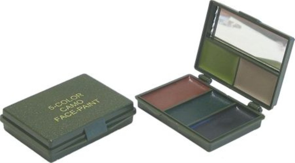 Termék leírás: 5 színű tepersmink (fekete, zöld, világos zöld, barna, beige + egy tükör). Álcázáshoz, terepgyakorlathoz alkalmazható.